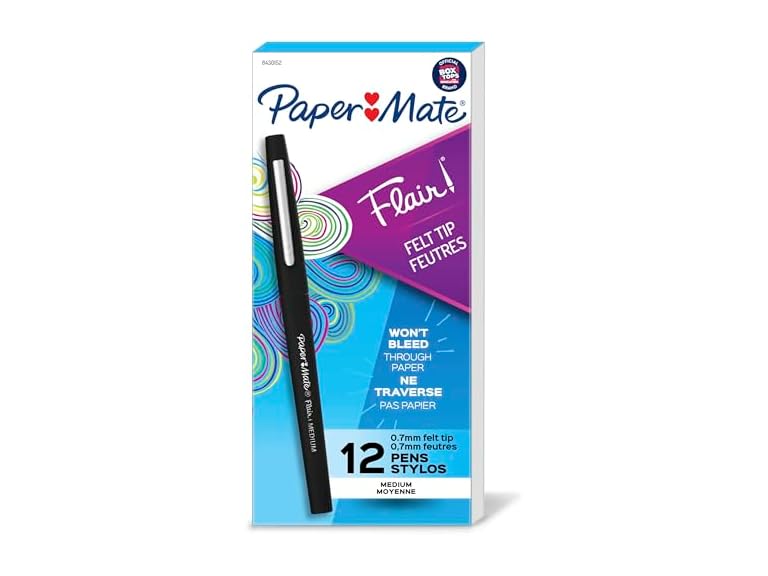 - Includes 12 Black Flair Pens