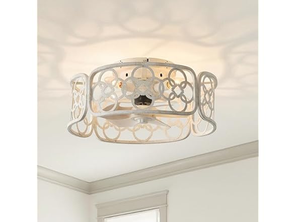 - Industrial Caged Ceiling Fan: Boasts a distressed white metal cage frame and sleek enclosed fan blades, seamlessly blending rustic industrial charm with quiet, functional ventilation