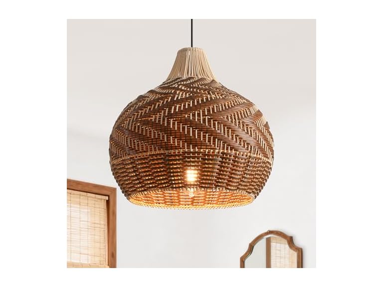 - 【Handwoven Bohemian Elegance】 Crafted with a meticulous blend of natural rattan and a sturdy iron frame, this 18.9" pendant light features a unique dual-tone chevron weave. The intricate pattern creates a warm, mesmerizing light-and-shadow effect, making it a perfect Bohemian centerpiece for your nursery, bedroom, or living area.