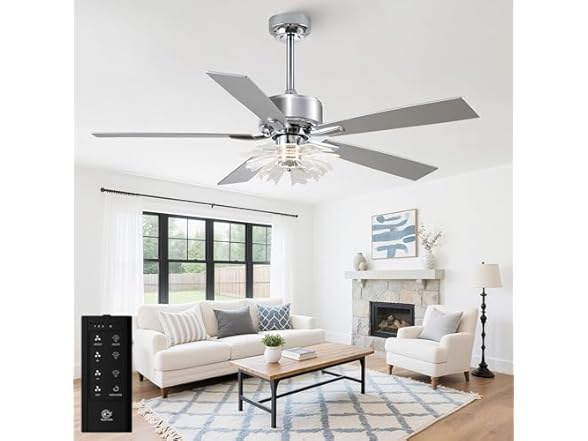 - (1) Parrot Uncle 52 Inch Ceiling Fans with Lights and Remote, Modern Silver Ceiling Fans for Bedroom Living Room, Dimmable LED Chandelier Ceiling Fan with 6-Speed Silent DC Motor, Reversible Blades, Timer, 3CCT