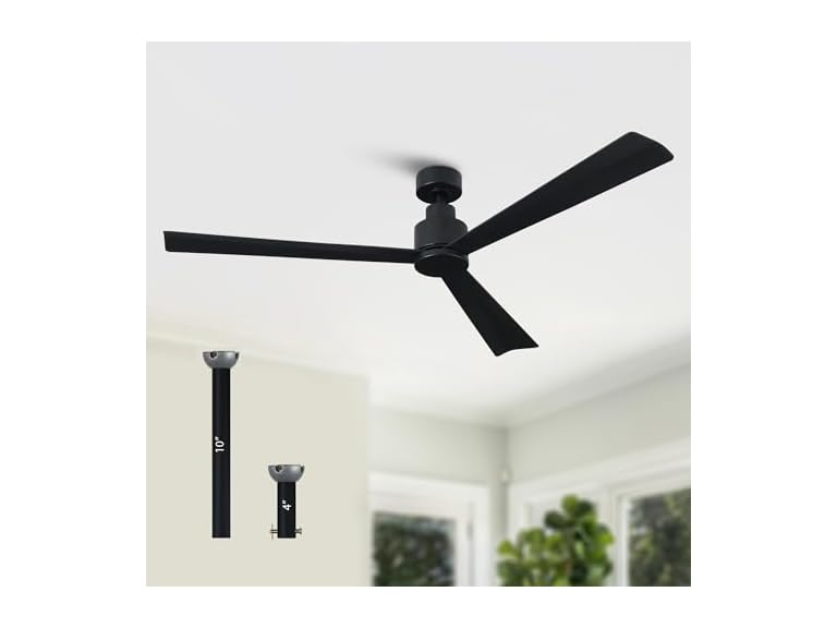 - CEILING FAN WITHOUT LIGHT: This 52 inch ceiling fan is equipped with the powerful DC motor without noise, max speed is 200 RPM. Features a sleek modern design that blends seamlessly with any home decor. Best performance for your living room, bedroom, dining room, covered pario, etc.