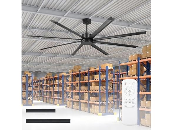 - (1) Parrot Uncle 100 Inch Large Ceiling Fan with Remote, Black Industrial DC Motor Fan No Light, 8 Aluminum Blades, 6 Speed Quiet Reversible Motor for Indoor, Garage, Shop, Patio