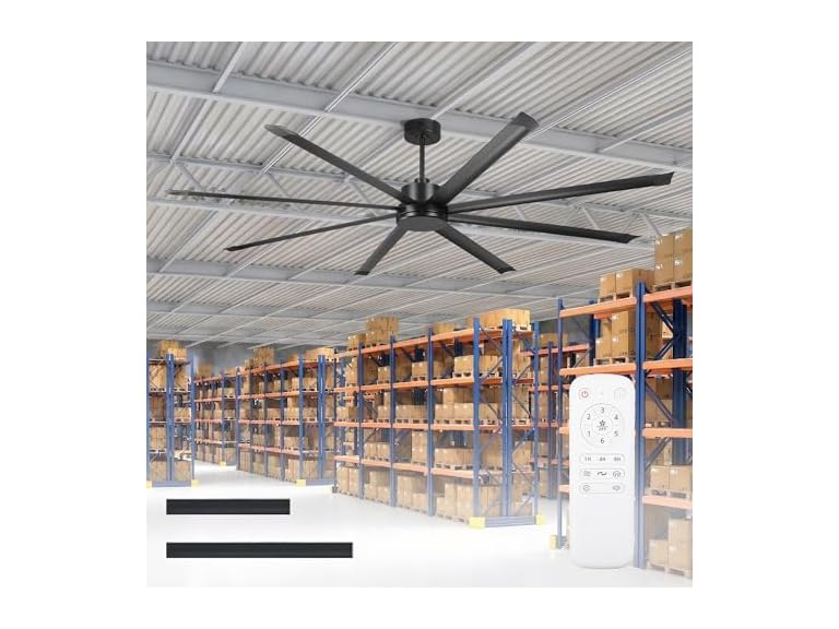 - MASSIVE 100 INCH SIZE: This industrial matte black ceiling fan with 8 sleek aluminum blades, creating a bold visual statement for any large space. The modern minimalist design with its sturdy iron body and elegant black finish complements both contemporary and industrial decor styles, making it an impressive focal point for living rooms, warehouses, gyms, and covered patios.