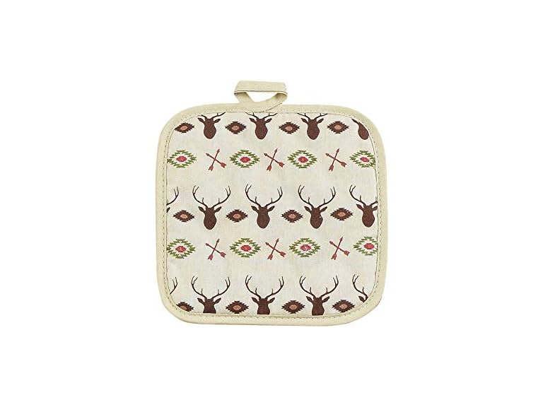 - (1) Paseo Road Aztec Deer Pot Holders for Kitchen, 10 Piece Set, Heat Resistant Hot Pads, Southwestern Deer Print, Cotton Rustic Cabin Style Pot Holder