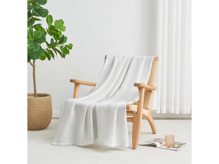 These cotton blankets featuring earth-toned colors feel like a dream. The durable cotton waffle weave offers a unique and tasteful style while still being versatile. This throw blanket is perfect to use year-round, in your bedroom decor or thrown over the couch in your living room.