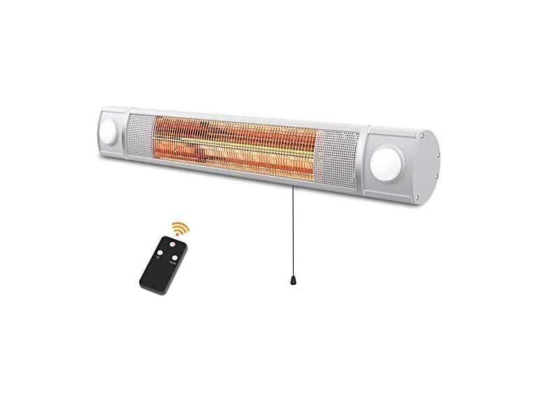 - (1) PATIOBOSS Electric Patio Heater, Wall Mounted Infrared Heater with 2 Led Light, Remote Control, Outdoor Heater for Garage Backyard, 1500W