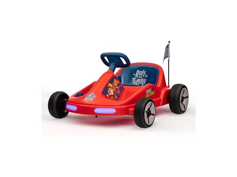 - Paw Patrol Chase 6V Electric Go Kart for Kids, Electric Ride-On Toy with Lights, MP3 Jack, Remote Control, Seat Belt, Ages 3-6, Durable PVC and Iron Construction, Rechargeable Battery