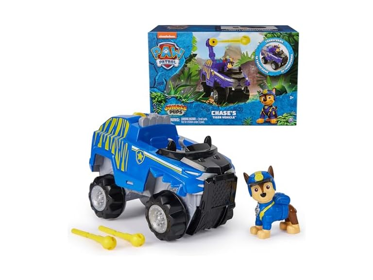 - (1) Paw Patrol Jungle Pups, Chase Tiger Vehicle, Toy Truck with Collectible Action Figure, Kids Toys for Boys & Girls Ages 3 and Up