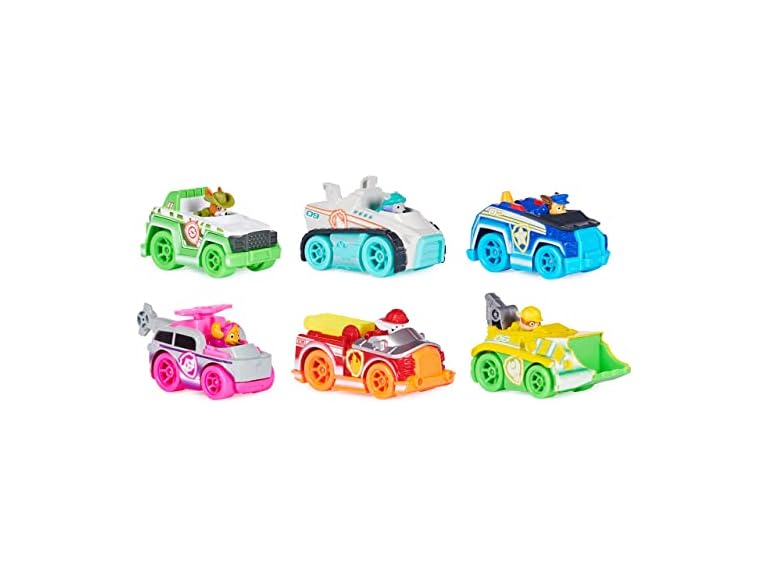 - (1) Paw Patrol, True Metal Neon Rescue Vehicle Gift Pack of 6 Collectible Die-Cast Toy Cars, 1:55 Scale, Kids Toys for Boys and Girls Ages 3 and up