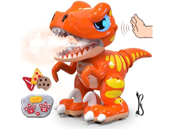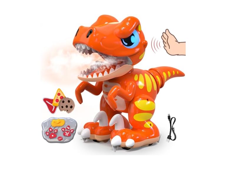 - STEM Robo-Dino Features – Fast 0.2s response, vibrating jaw module, glowing LED eyes, and roaring sound effects. Packed with silly dino noises—snorts, giggles, and burps—for endless laughs