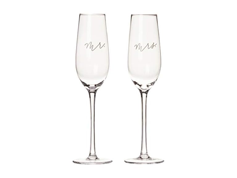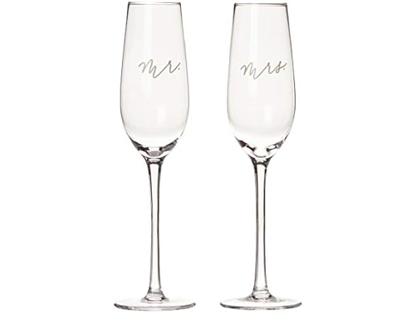 - Celebrate in Style: Make your wedding toast unforgettable with Pearhead's beautifully scripted "Mr." and "Mrs." champagne flutes. These elegant glasses are perfect for wedding receptions, engagement parties, or anniversary celebrations.