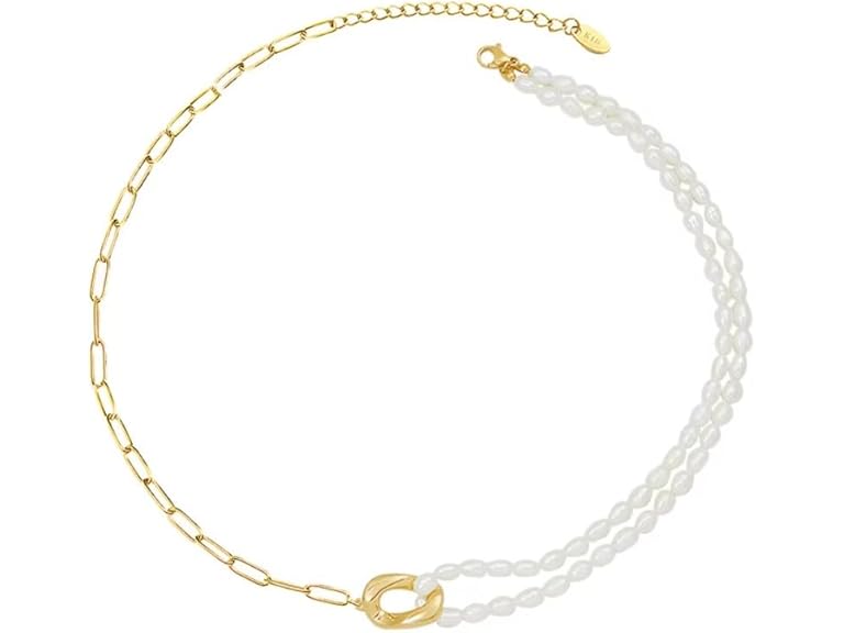 - Elegant Freshwater Pearl Necklace: This stunning freshwater pearl necklace for women features lustrous pearls, 18K gold-plated stainless steel chain, offering a timeless, luxurious look for any occasion.