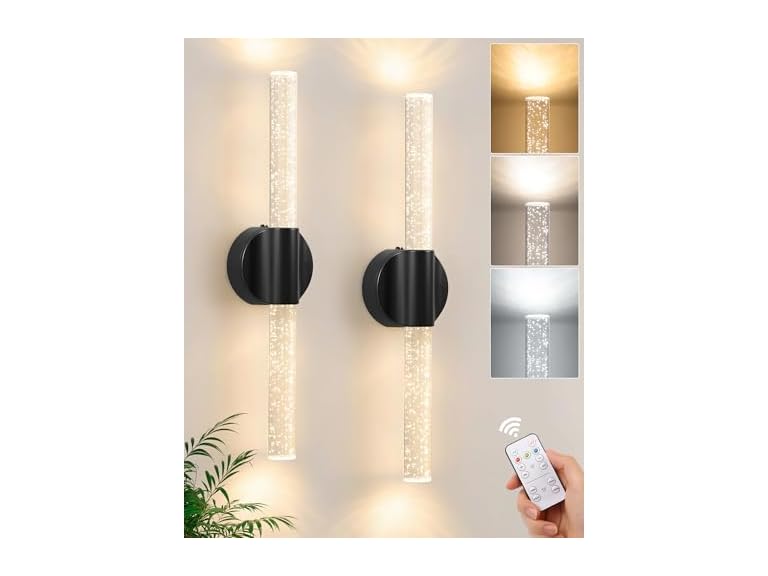 - Multifunctional Touch & Remote Control: Searching for an all-in-one lighting solution? These wireless wall sconces feature both touch control on the fixture and a wireless remote—each offering seamless command over on/off, 10%-100% stepless dimming, and 3000K/4000K/6500K. Plus, enjoy the convenience of one-touch preset timers (15/30/60/120 minutes) on the remote for saving on your electricity bill. It even remembers your preferred brightness for each color temperature. (Note: 2 remotes included)