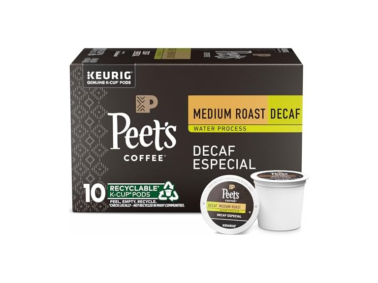 - (1) Peet's Coffee, Dark Roast Decaf Keurig K-Cup Pods - Decaf Especial 10 Count