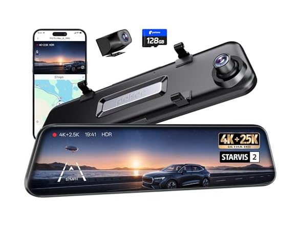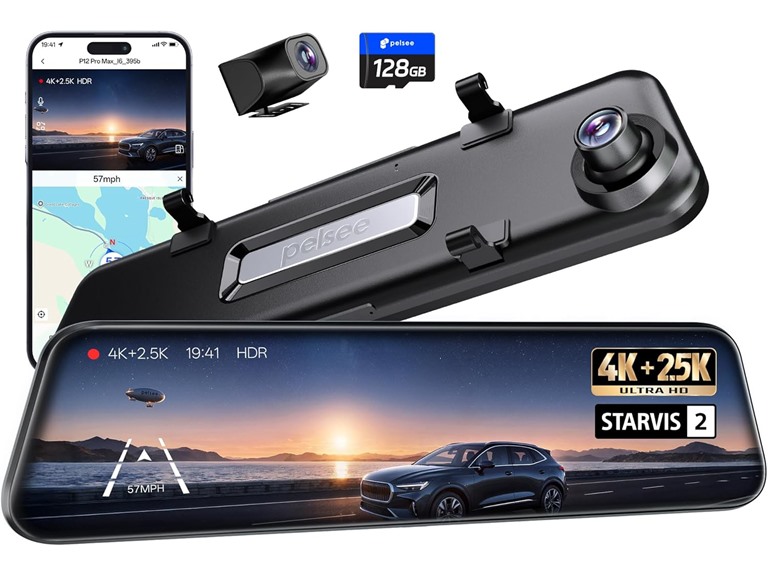 Pelsee 4K+2.5K Mirror Dash Cam | 128GB Card