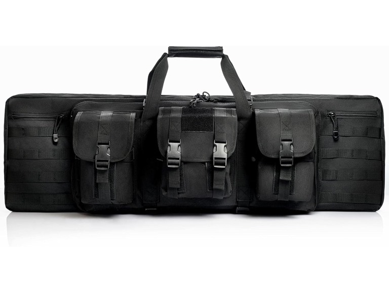 - UNIQUE DESIGN: Molle system designed to for attaching additional tactical pouches and gears. There are fastener straps, stock sleeve and you can open the gun bag up and lay it out flat. Waterproof, dustproof and well-padded to protect your gun during transport.