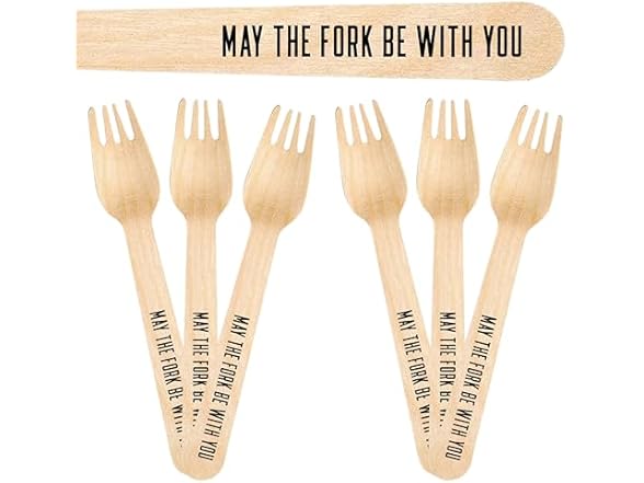 - (1) Perfect Stix Wooden Forks, 6 Inch, May the Fork Be With You Print, Black, 50 Count