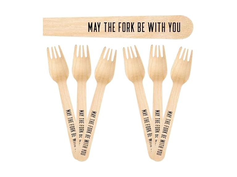 Perfect Stix Wooden Fork, May the Fork Be With You Print, 50 Count