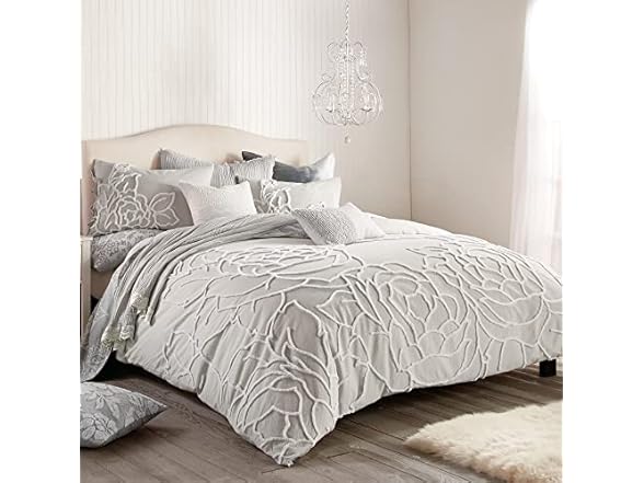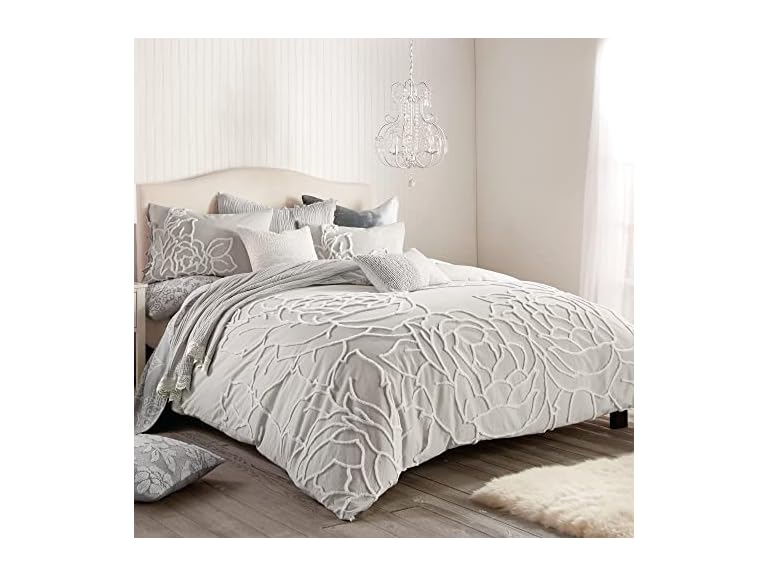 - (1) Peri Home 100% Cotton 3-Piece Duvet Cover and Sham Set, King, Grey Chenille Rose
