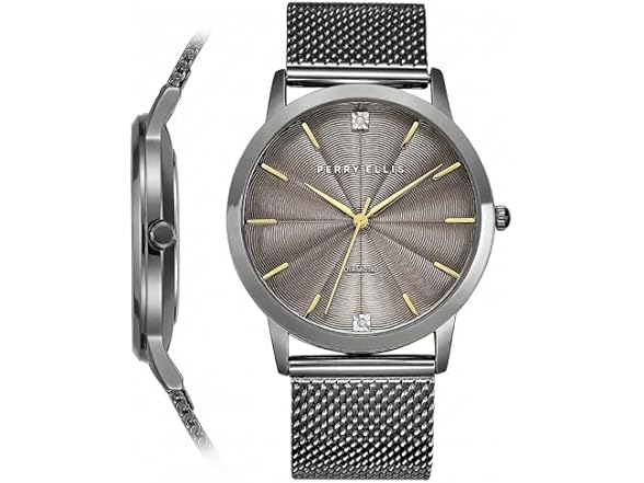 - Perry Ellis Ultra Slim Diamond Men’s Watch – Round Dial, Alloy Mesh Band, Water-Resistant Analog