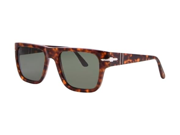 - FRAME FEATURES: PO3348S sunglasses feature an oversized square, Havana frame with green lenses.