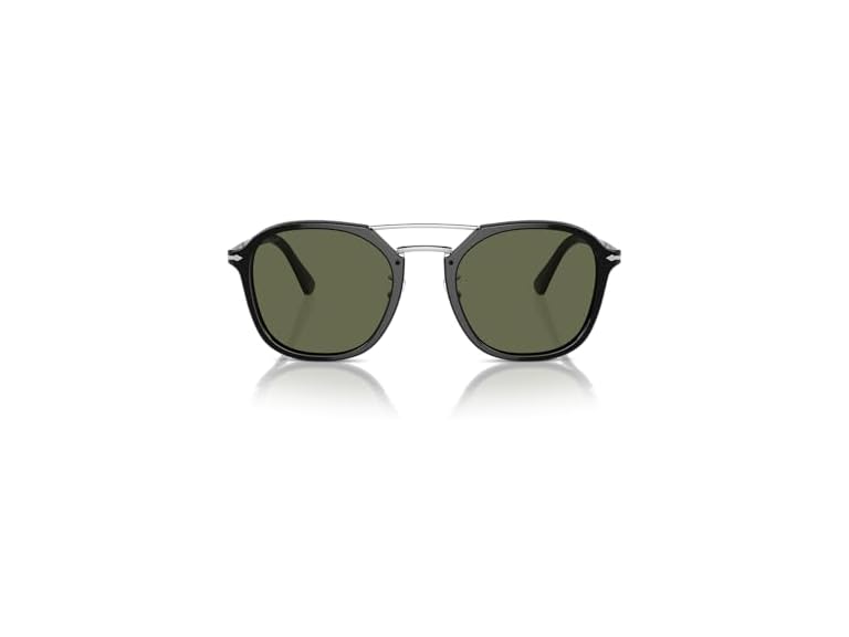 - FRAME FEATURES: PO3352S sunglasses feature a square, black frame with polarized green lenses.