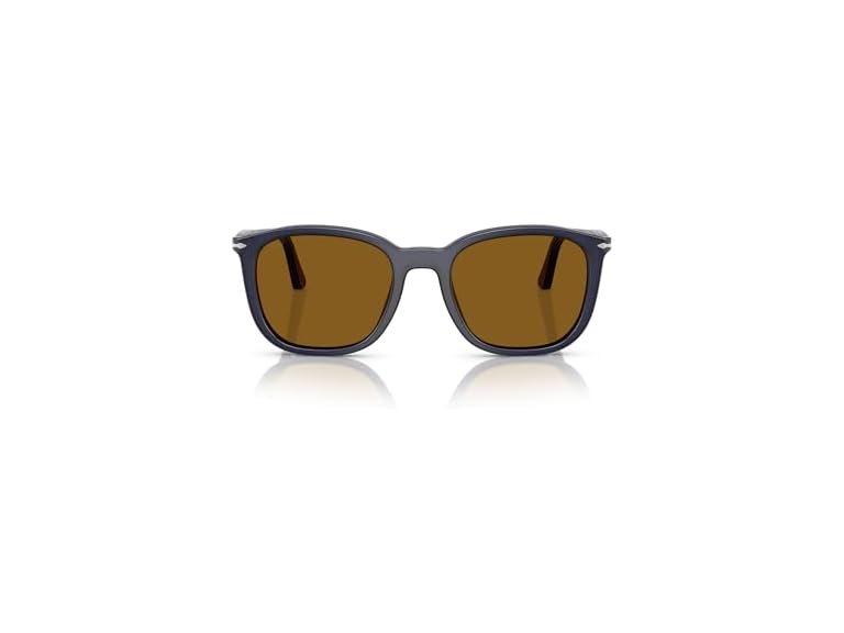 - FRAME FEATURES: PO3355S feature a square, Milky Depths blue frame and brown lenses.