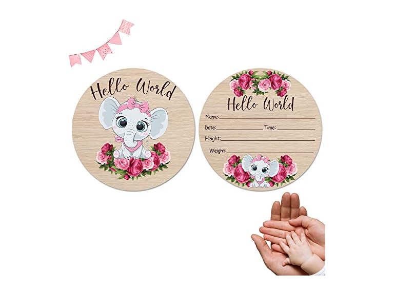 - (1) TEEMENT Personalized DIY Wood Birth Announcement Card Round for Newborn Baby I'm Here Wooden Plaque for Baby Name and Birth Detail