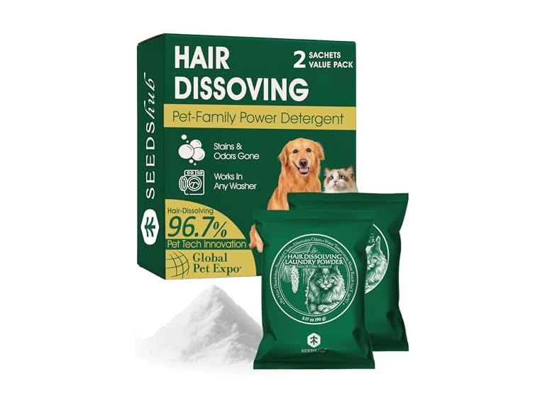 - Long-Lasting Efficiency: Enjoy up to 12 months(use monthly) of effective pet hair removal with our convenient pack of 12 sachets. This fur remover provides a comprehensive solution as a superior dog laundry detergent and pet fur remover. For optimal results, use one sachet per load monthly to ensure deep cleaning and maximum pet hair dissolution.