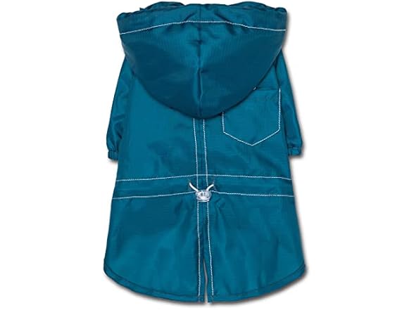 - This Waterproof Dog Coat features adjustable Jaw Strings by the Waist and Hood areas with Elastic Stitching by the sleeves for tailored fit while Providing Complete Rain or Water Protection