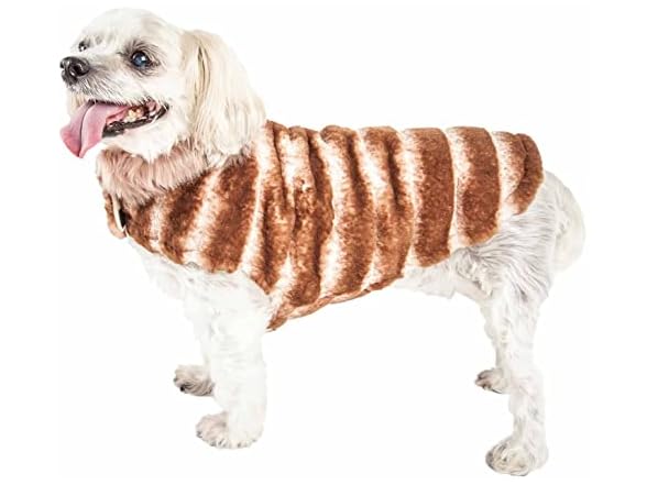 - The Tira-Poochoo Tiramisu Patterned Mink Fur Dog Coat Features a Multi-Colored pattern that looks trendy, this Outershell is composed of Ultra-Smooth Luxury Faux-Fur