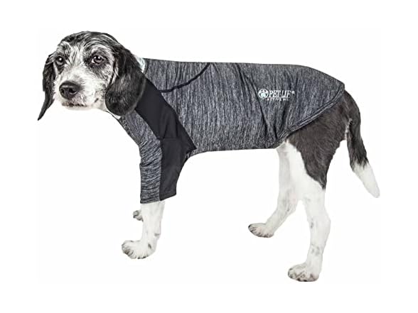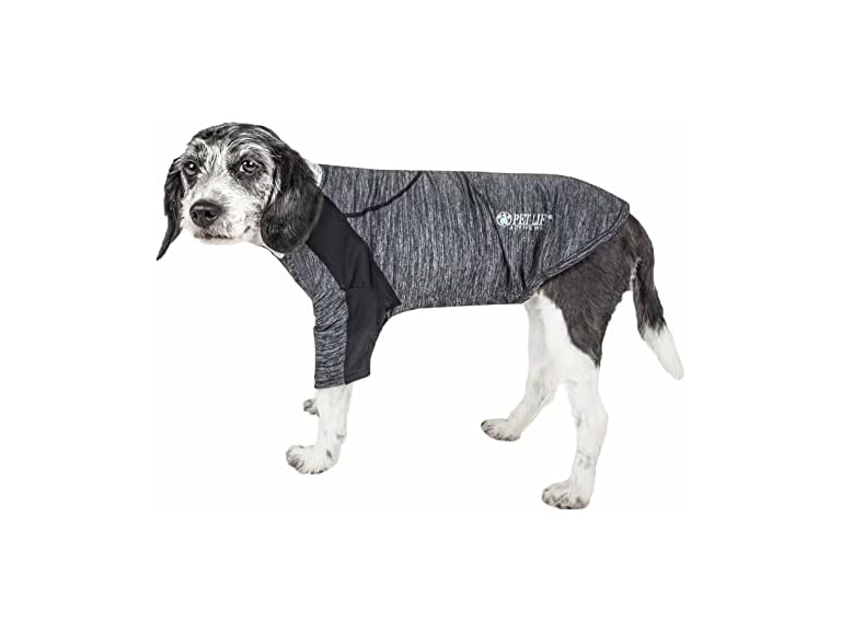 The Pet Life ACTIVE 'Chewitt Wagassy' Heather Triple-Toned Long Sleeve Performance T-shirt features specially engineered Stretchy fabric that are Lightweight and Permeable resulting in a well Ventilated system that is specially developed to maximize Mobility and Breathability. Features 4-Way Stretch Technology that moves better in every direction with a customized relaxed fit without the squeeze and won't bunch up. The side of the body and arms feature a lighter blend of fabric for strategic ventilation. Features Quick-Drying properties that dries extremely fast while offering Anti-Odor technology that prevents odor causing microbes. The Chewitt-Wagassy Long Sleeve T-shirt is also UV Protectant against the suns harmful rays and fitted perfectly to help assist in containment or collection of shredded hairs. Design features Dual Reinforced stitching at every seam for durability with a convenient zippered design with protective zipper flaps preventing the pet's hairs from getting caught within the zipper tracks. Additionally this T features Reflective Taping for added night visibility and a Leash Slit along the back. Machine Washable. This style is part of our Pet Life Active wear Collection. Available in Multiple Sizes and Colors. SIZING SPECIFICATIONS: In (Inches) "Back" Length is from Neck to Tail: * See image chart for sizing approximation EXTRA SMALL: Back: 9.5" Chest: 13.5" Neck: 12.5" Sleeve: 4.5" SMALL: Back: 11.5" Chest: 16.5" Neck: 13.5" Sleeve: 5 MEDIUM: Back: 15" Chest: 20.5" Neck: 15.5" Sleeves: 5.5" LARGE: Back: 18.9" Chest: 25.5" Neck: 17.3" Sleeve: 6.1" EXTRA LARGE: Back: 22" Chest: 30.5" Neck: 19.8" Sleeve: 7".