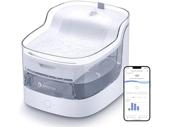- 【Waterfall Flow Design】An innovative creation from Petgugu. The cat water fountain features a waterfall that flushes debris from the cat water bowl. With a 3° tilt design to prevent wet chins, it encourages pets to drink more water, reducing the risk of kidney stone diseases.
