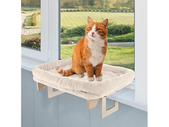- CAT WINDOW BED - This cat perch gives your indoor cat a suitable place to enjoy the view of the outdoors while basking in the sun. The cat window seat features a large platform for your furry friend to sprawl out without taking up vital floor space.