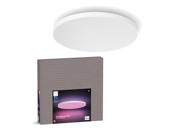 In the Box: (1) Philips Hue Datura Smart Ceiling Panel (Large Round 2.49 in x 22.60 in) White & Color Light, Bluetooth Compatible, Voice Control with Alexa, Apple Home & Google Assistant†? | Voice Control, Bluetooth Compatible, with Alexa, Apple Home, Google Assistant