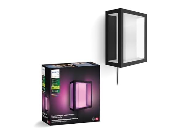 In the Box: (1) Philips Hue Impress Outdoor Wall Light Wide (Low-volt), (240 x 190mm) White & Color Light, Voice Control, Bridge required