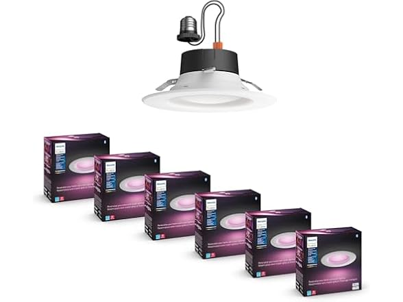 - WHAT’S IN THE BOX - Includes six White and Color Ambiance smart retrofit LED 5/6” downlights for recessed cans. Determine the right size of your downlight before purchasing it; Philips Hue 4" downlight (B0BCH8BQP3) is available for purchase separately.