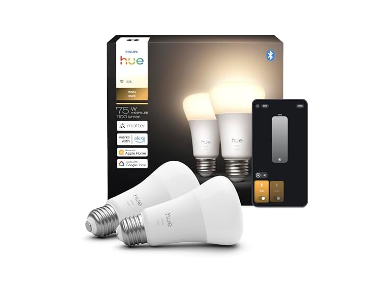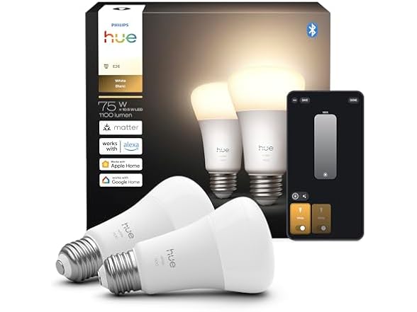 - (1) Philips Hue Smart LED A19 Bulb, Warm White Light 2700K, E26 Base, 10.5W, 1100 Lumens, Dimmable, 4 Pack