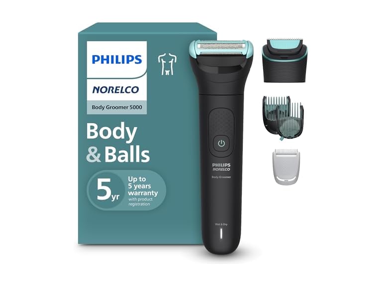 (1) Philips Norelco Body Groomer 5000 Series, Intimate Hair Shaver & Trimmer for Men with Interchangeable & Adjustable Full Body Trim & Shave Heads, 100% Showerproof, BG5490/50