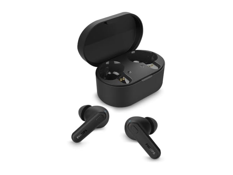 (1) Philips TAT1108 Wireless Earbuds,True Wireless Headphones,Powerful Bass with 6 mm Driver,Clear Call with AI Mic,15-Hour Battery Life,Bluetooth v5.3,IPX4 Rating