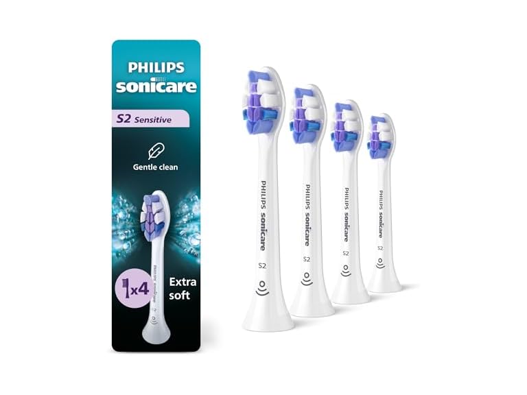 - Philips Sonicare S2 Sensitive - Genuine Replacement Electric Toothbrush Heads, White, 4 Pack One Year Supply, HX6054/77