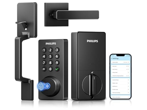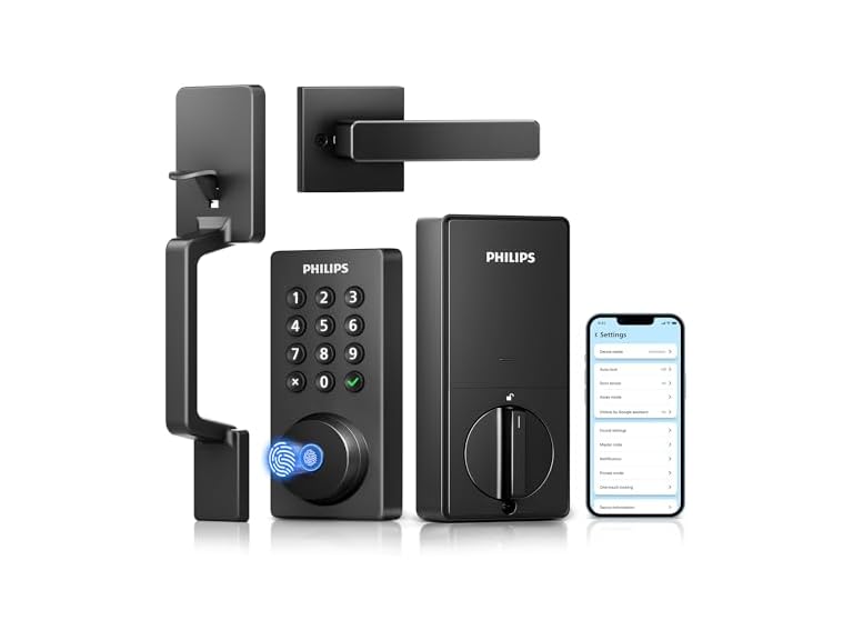 - Philips Wi-Fi Smart Door Lock Deadbolt with Handle Set, Keyless Entry Door Lock for Front Door Set, Portable Fingerprint Door Lock with App Control, IP53 Waterproof, Auto Lock, Alexa Voice Control