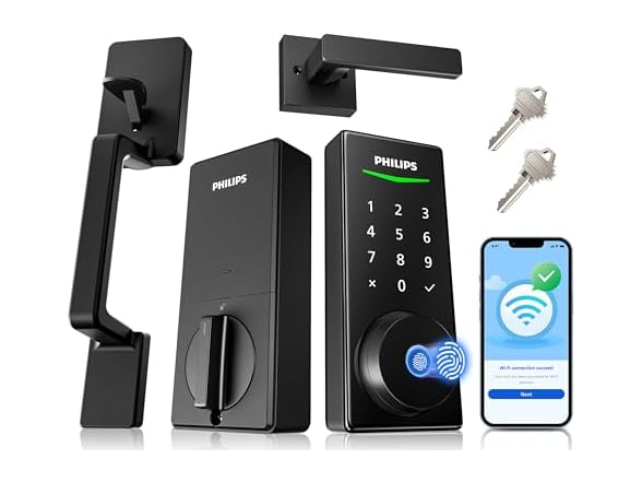 - Philips WiFi Smart Lock with Front Door Handle Set, Built-in WiFi, APP Remote & Voice Control, Fingerprint Keyless Entry Door Lock, Keypad Deadbolt Smart Locks for Front Door, Auto-Lock, Matte Black