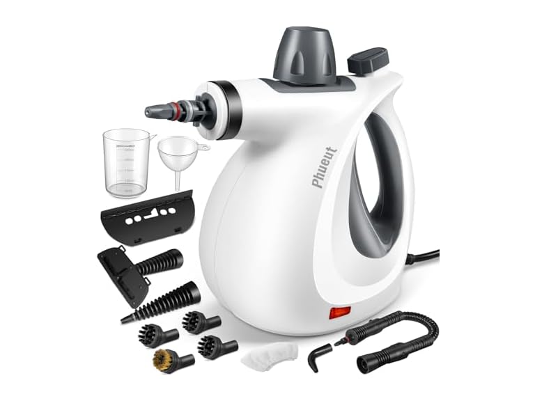- (1) Phueut Pressurized Handheld Multi-Surface Natural Steam Cleaner with 12 pcs Accessories, Multi-Purpose Steamer for Home Use, Steamer for Cleaning Floor, Upholstery, Grout and Car