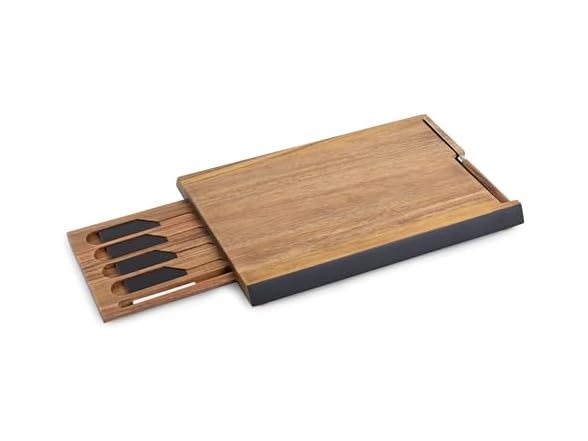 - EXPRESS YOURSELF - Use the chalk to label cheeses - and to write your own special message on the chalkboard area along the front edge of this easy-transport acacia wood cutting board
