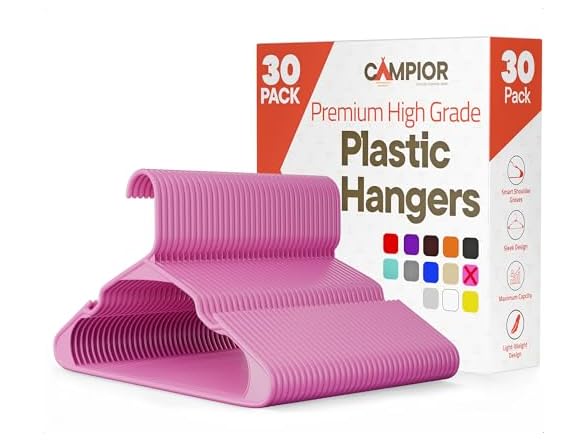 - Pink Plastic Hangers 30 Pack– Heavy-Duty Plastic Hangers Slim and Space-Saving, Durable and Lightweight PP with Non-Slip Shoulder Notches for Slip Dresses, Suits, Jackets & Camisoles