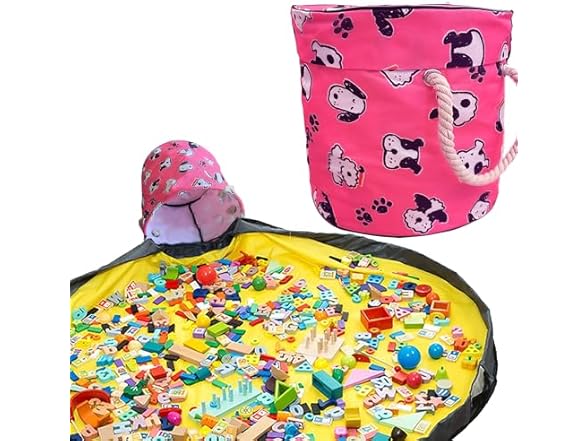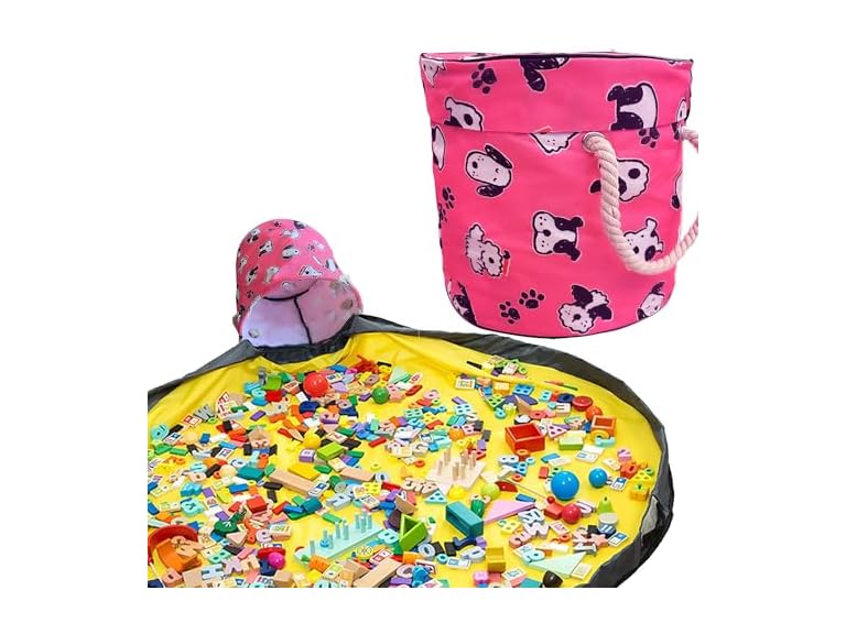 - ULTIMATE TOY ORGANIZER: Say goodbye to the clutter of scattered toys with our innovative toy storage basket, designed to make tidying up a breeze. Featuring a spacious 12.6"x12.6" storage basket and a 59" diameter play mat, our organizer is perfect for all kinds of toys, from building blocks to stuffed animals. The integrated play mat allows to enjoy creative play, and when it’s time to clean up, pull the drawstring to gather everything in seconds. Perfect for and girls.
