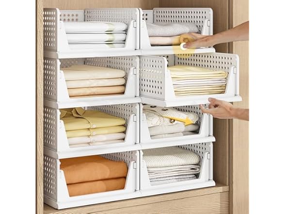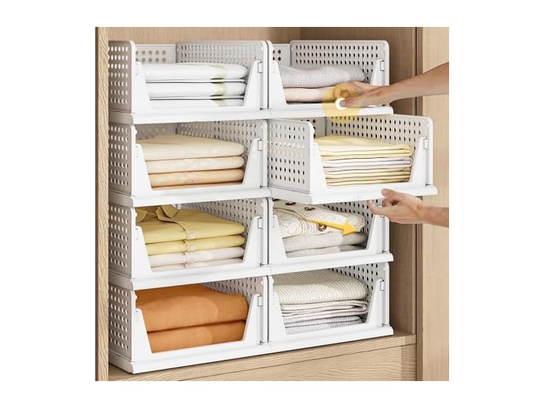 - 【Assembly Easily & Stackable】: Easy to set up, follow the steps in pictures. Adjust to your own liking by stacking the perfect number to fit your own space. Set of 5 wardrobe clothes organizer can be stackable which make home space organized, max the use of vertical space. You can stack multi-layer wardrobe storage organizer according to your needs freely. Dimensions of each when set up: 16.6" x 13.1" x 7.32" (L x W x H).