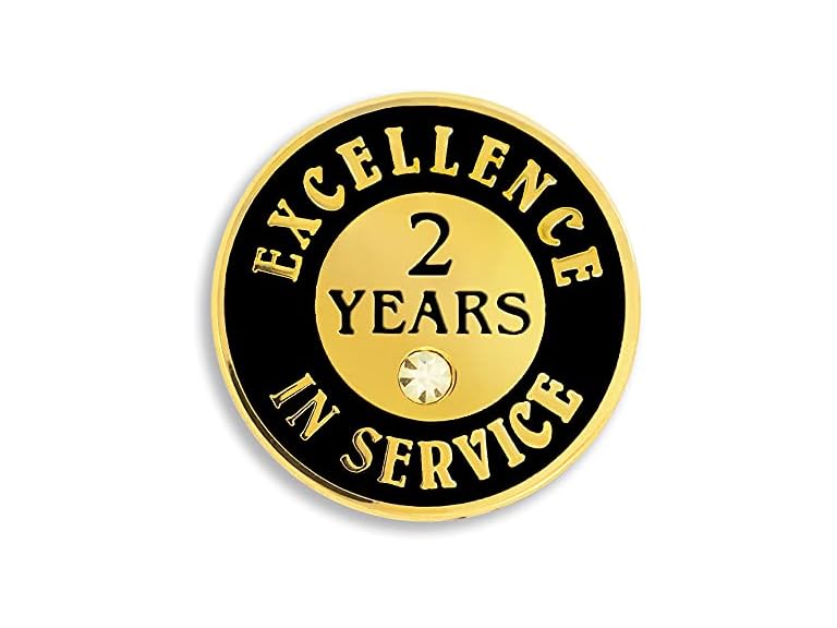 - (1) PinMart 2 Years of Service Pin - Excellence in Service Award Lapel with Rhinestone – Perfect for Employee Recognition Pins for Employees, Volunteer Appreciation, and Work Anniversaries – 10 Pack
