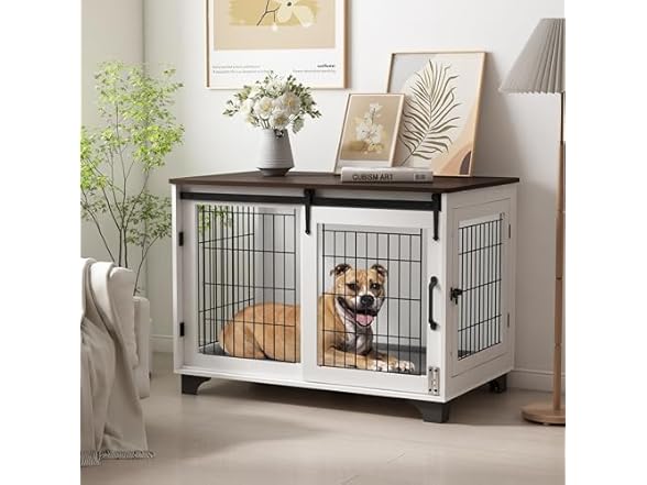 - Piskyet dog crate furniture,Farmhouse barn door dog crate for large dogs 80lb